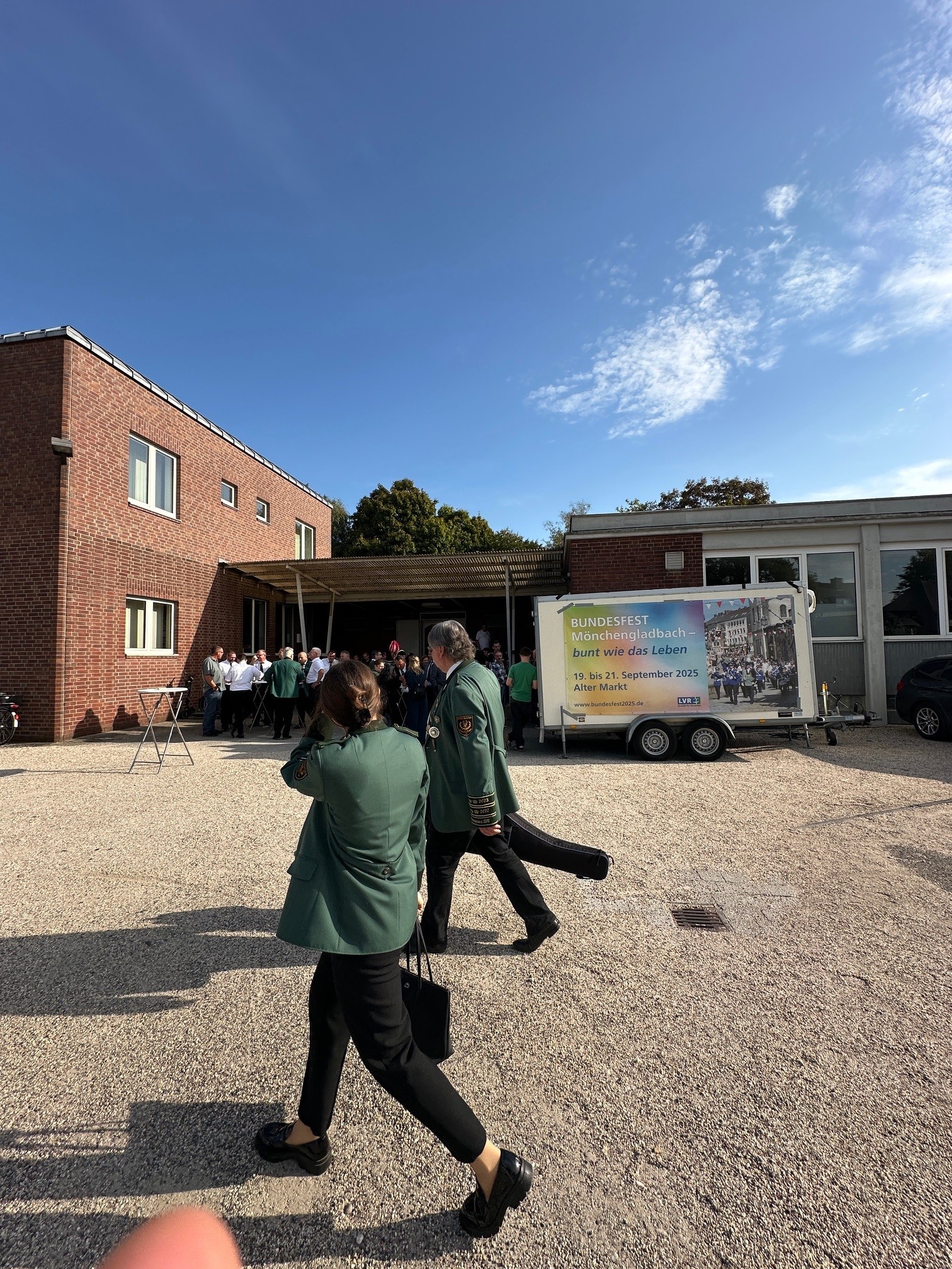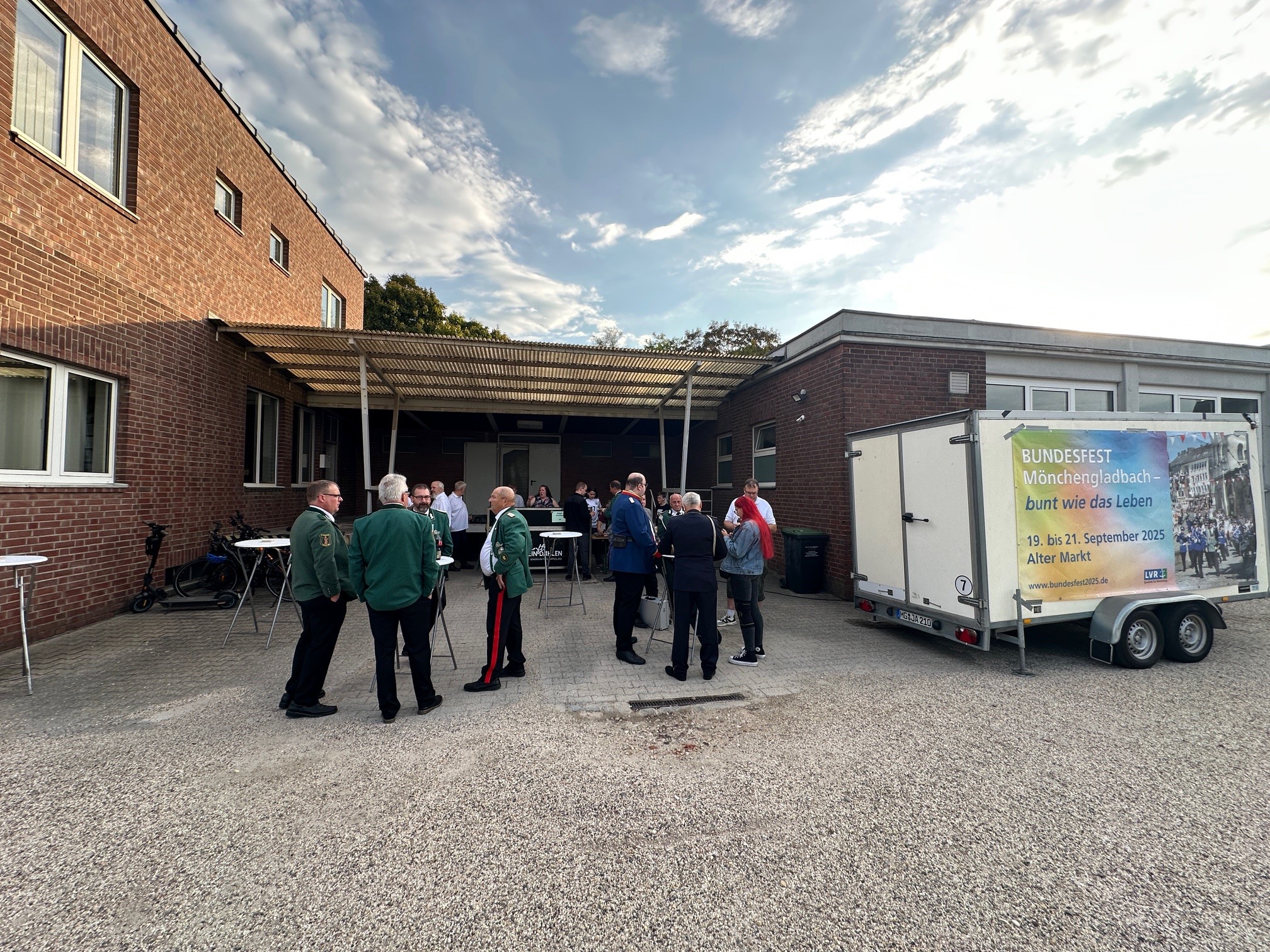 Die Rückseite mit dem Schriftzug und Wahlspruch unserer Bruderschaft „Glaube – Sitte – Heimat“ wird dominiert durch einen Eichenbaum in dessen Laub das Rheindahlener Wappen zu sehen. Die ganzheitliche Darstellung verdeutlicht unsere Losung „Aus alten Wurzeln – neue Kraft“. Besondere Aufmerksamkeit verlangt der ehemals getrennte Hauptstamm, aus dem wieder ein neuer kräftiger Stamm erwachsen ist. Aus der Sicht und mit den Erfahrungen, die die Gestalter vierzehn Jahre nach dem Krieg und dem Terror haben mussten, ist dies durchaus nachvollziehbar.